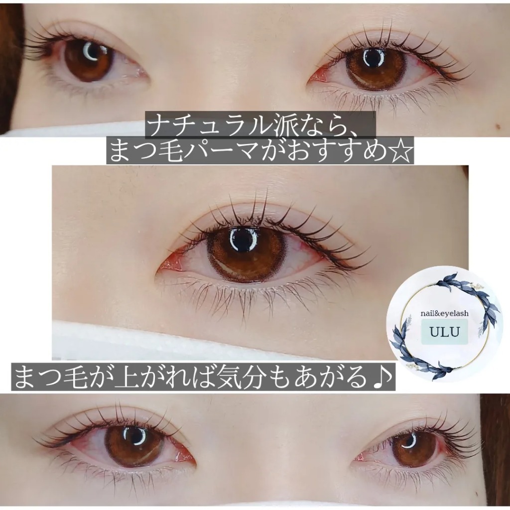 マツエクももちろんオススメですが、ナチュラル派はまつ毛パーマがおすすめです(^^)ビューラーでは出せない曲線美は一度したらやめられません♪ネイル、マツエク、まつ毛パーマの記事はこちら→https://www.instagram.com/ulu.mishima.2022/
